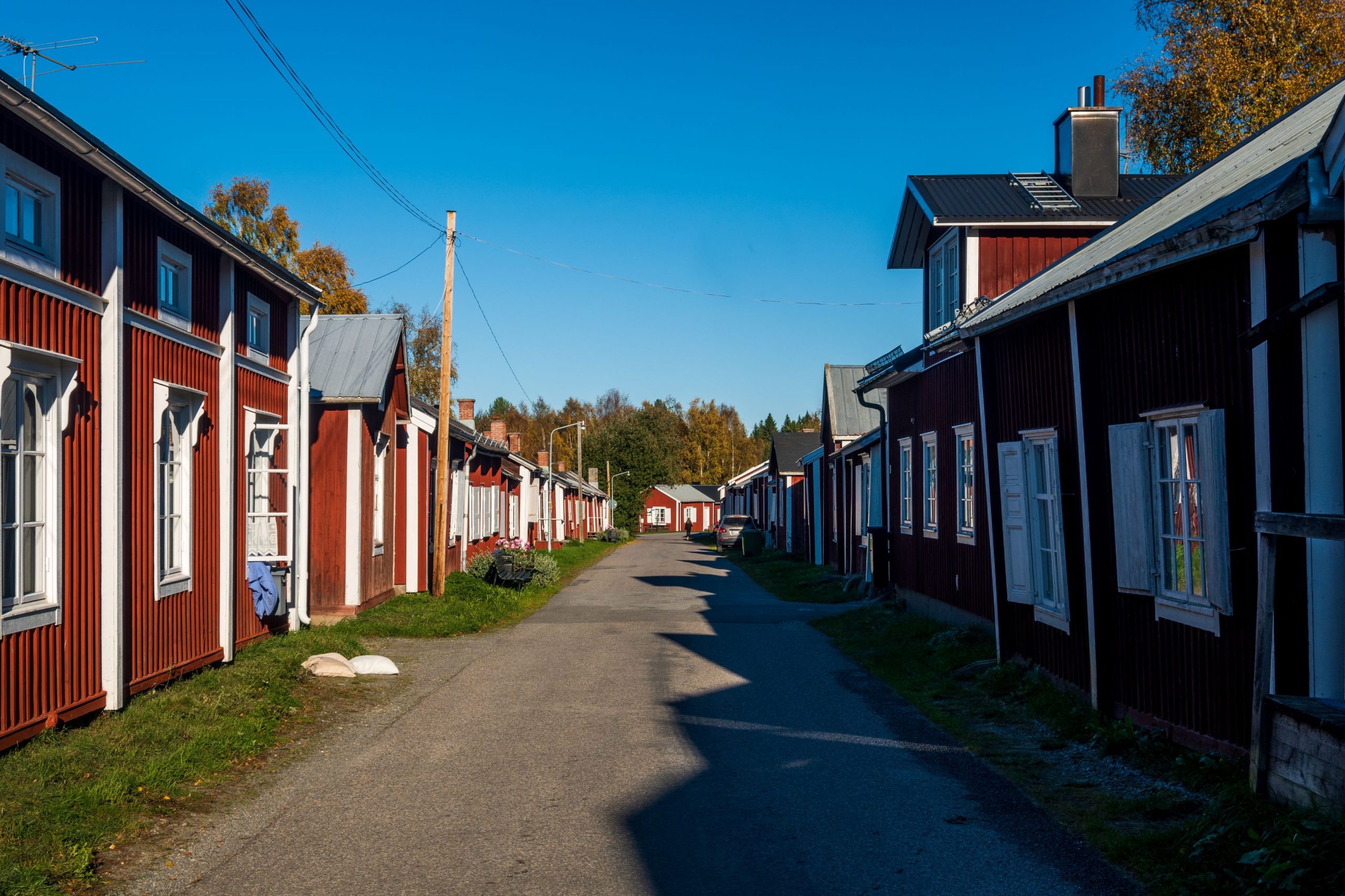 Mi smo parkirali v neposredni bližini hišk na brezplačnem makadamskem parkirišču (65.647471, 22.036093) in se v popoldanskih urah sprehodili po prekrasni ulici. Bil je zares lep sončen dan, tako da so rdeče lesene fasade kar žarele. Območje je sicer zelo majhno, muzej na prostem pa je v hladnejših mesecih zaprt, zato smo se kar hitro vrnili v naš brlog. Na parkirišču smo tudi prenočili.